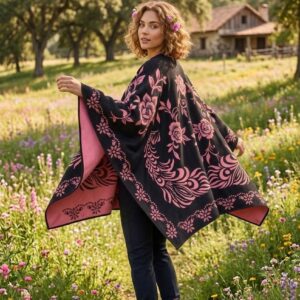 Poncho Negro y Rosa, Diseño Floral